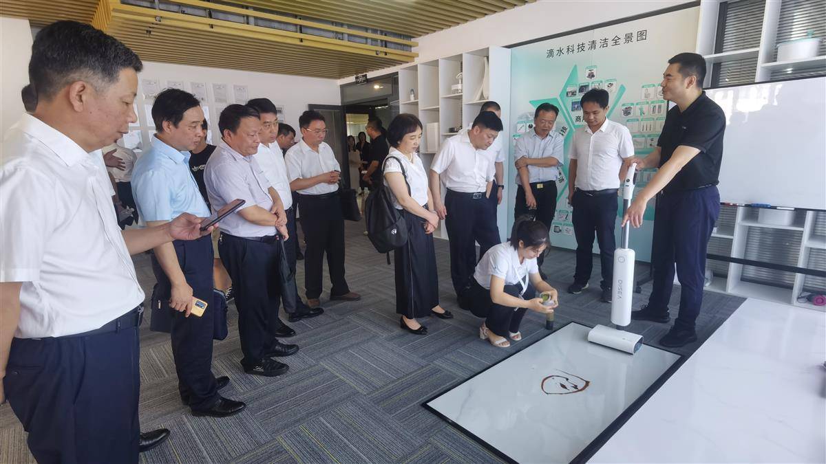 咸宁(武汉)离岸科创园入驻企业滴水科技展示一款正在热卖的洗地机。
