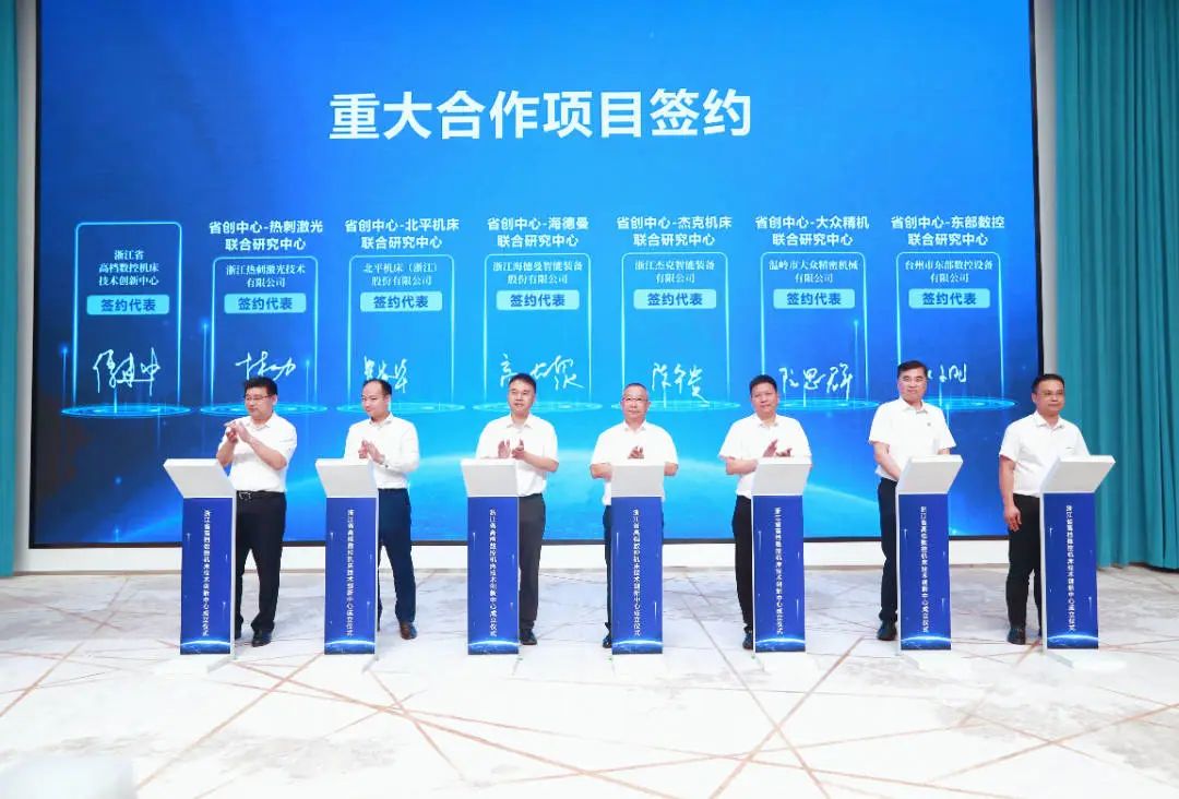揭牌仪式上,浙江大学傅建中教授介绍省高档数控机床技术创新中心建设方案,省科技厅副厅长周土法宣读有关文件。浙江大学、温岭市政府签署共建浙江省高档数控机床技术创新中心战略合作协议;国家智能设计与数控技术创新中心、浙江省高档数控机床技术创新中心签署共建国家智能设计与数控技术创新中心浙江中心合作协议;省高档数控机床技术创新中心分别与一批企业、院校进行重大合作项目签约。