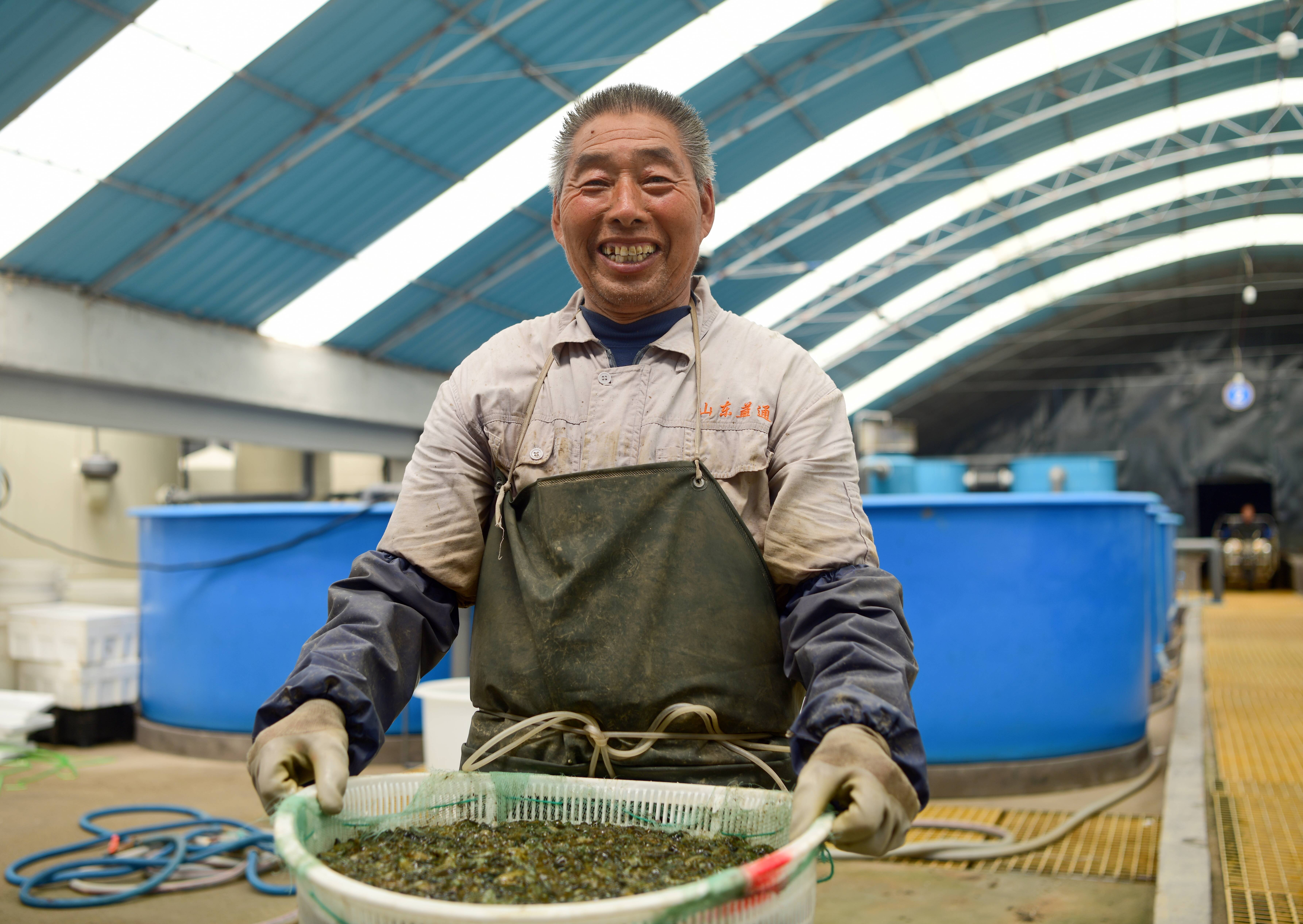 正在收获的刺参苗种正是“参优1号”。“‘参优1号’具有生长速度快、抗病力强、耐高温等特点,收益量和存活率显著提升。”李青介绍,该良种6月龄苗种灿烂弧菌攻毒侵染后成活率平均提高29.31%,收获时体重提高23.58%,“一斤海参幼苗到达成熟期后重量可达四斤。”