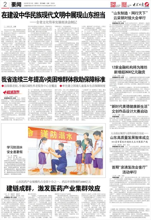 今天,由大众报业集团、山东省科协联合发起的山东高质量发展智库正式成立,400名省智库决策咨询专家先行进驻大众日报客户端。这是大众报业集团加快推进媒体深度融合发展,不断拓展党媒全媒体平台“新闻+”功能的又一举措。 山东高质量发展智库将广泛吸纳省内外有关领域知名专家学者,形成咨询研究、大数据、榜单排行、会议会展、品牌传播、舆情观察等六大类智库产品和服务,打造一流的“思想库”“智囊团”,为山东高质量发展助力赋能。今年以来,大众日报与省科协共同举办了三期山东省创新驱动发展大会智库论坛、两期智库沙龙、一次调研行活动。