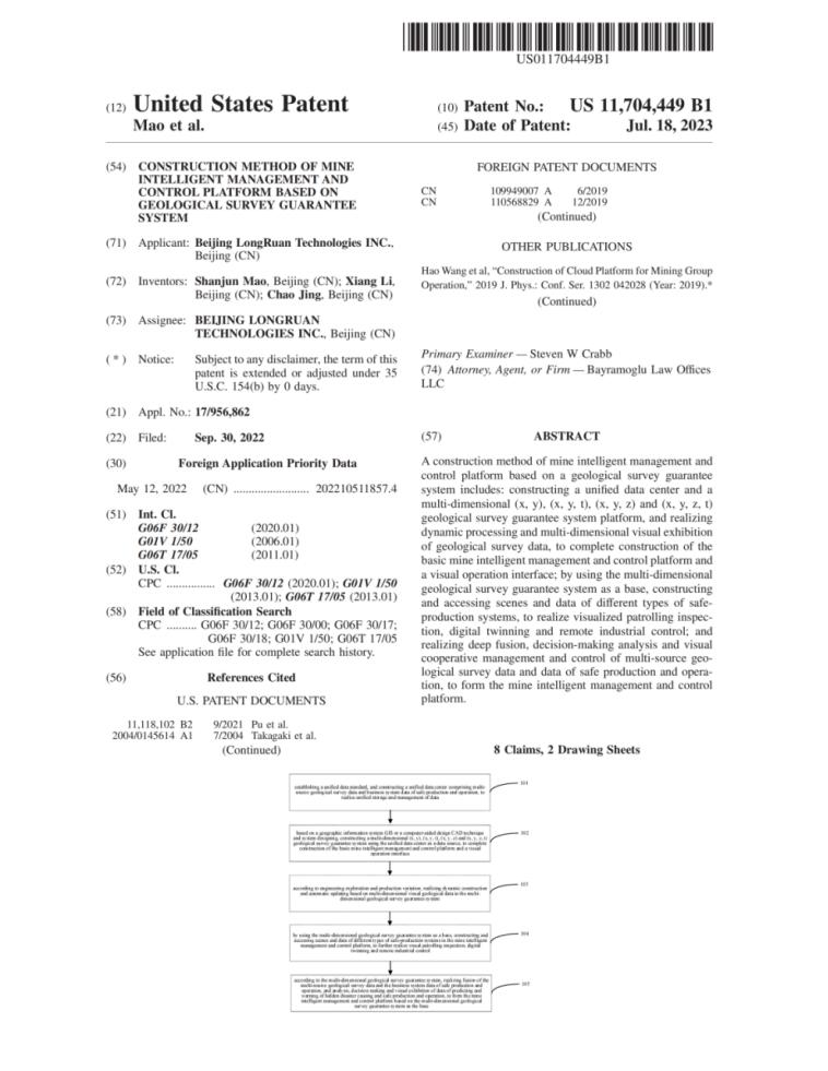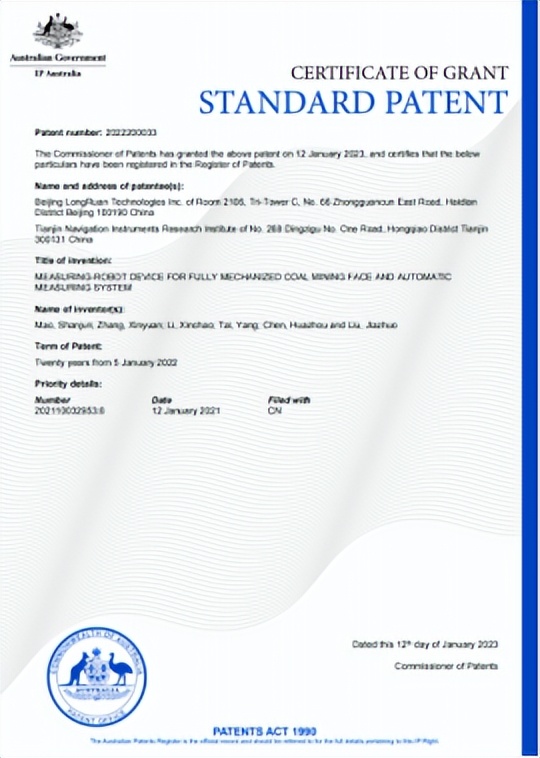 近日,围绕智能化矿山建设必备的智能化工作面测量装备、智能化管控平台,公司“一种综采工作面测量机器人装置和自动测量系统”、“基于地质测量保障系统的矿山智能化管控平台建设方法”两项专利在国内发明专利授权基础上,分别获得了美国、加拿大、澳大利亚、俄罗斯等国家的国际发明专利授权,在智能矿山国际业务领域构筑了专利壁垒,为龙软科技走出国门、服务全球打下了坚实基础。