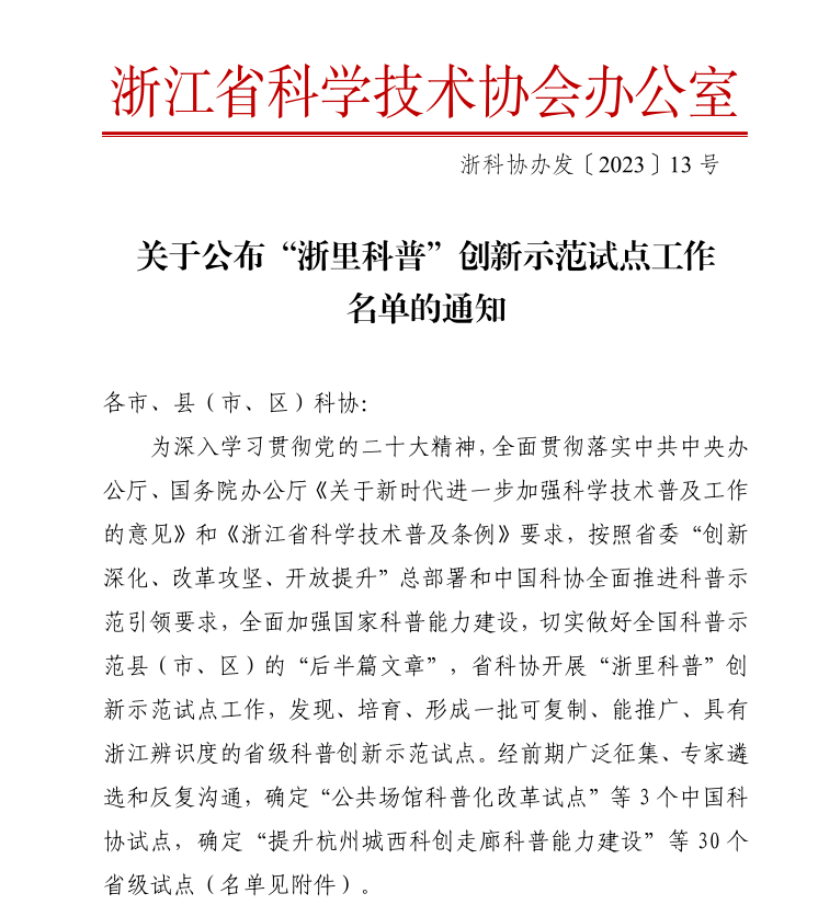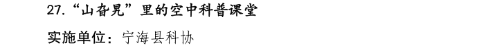 近日,浙江省科协公布“浙里科普”创新示范试点工作名单,宁海县科协牵头实施的“山旮旯”里的空中科普课堂成功入选省级科普创新示范试点名单。