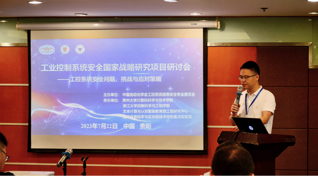 7月21日-23日,工业控制系统安全国家战略研究项目研讨会在贵州贵阳召开。本次研讨会由中国自动化学会工控系统信息安全专业委员会主办,贵州大学计算机科学与技术学院、浙江大学控制科学与工程学院、文本计算与认知智能教育部工程研究中心、贵州省密码学与区块链技术特色重点实验室承办。组委会成员包括顾问主席中国自动化学会特聘顾问、浙江大学孙优贤院士,主席中国自动化学会工控系统信息安全专业委员会秘书长、浙江大学程鹏教授,邓瑞龙教授,组织主席贵州大学张镇勇教授等。会议邀请了贵州大学计算机科学与技术学院党委书记龙慧云教授、博智安全科技股份有限公司总裁助理王力先生、中南大学自动化科学与技术系主任蒋朝辉教授、西安交通大学网络空间安全学院副院长刘烃教授、贵州磷化(集团)有限责任公司信息化部杨晓勇部长、贵州航天云网科技有限公司文杰副总经理等高校和企业的专家学者。本次研讨会旨在探讨工控系统安全问题、挑战与应对策略,为工控系统安全防护建言献策,助力构建我国工控系统安全防御体系、提升我国工控安全防护能力、推动我国工控安全产业生态发展。