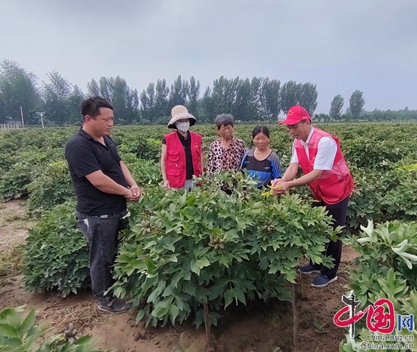 牡丹是中国的传统名花,花大色艳、芳香浓郁,被誉为“花中之王”“国色天香”。目前,菏泽牡丹已发展到9大色系、10大花型、1280个品种,是世界上最大的牡丹繁育、栽培、科研、加工、出口和观赏基地。2022年以来,针对牡丹和芍药田间管理水平不高、栽培技术参差不齐、病虫害防治不到位、重栽轻管等突出问题,菏泽市科技特派员牡丹产业服务团紧紧围绕牡丹产业发展需要,依托牡丹产业服务团人才、技术优势,采取现场指导、集中培训、网上答疑等多种服务方式,为广大花农解决栽培管理中遇到的关键技术问题,提升花农管理技术水平,加速牡丹科技成果的转化和推广,并培养了一批牡丹产业人才,构建起牡丹助力乡村振兴的服务体系,示范带动多家牡丹企业转型升级,示范带动花农增收、农业增效、产业健康发展,为乡村振兴提供科技支撑,推进黄河流域生态保护和牡丹产业高质量发展。