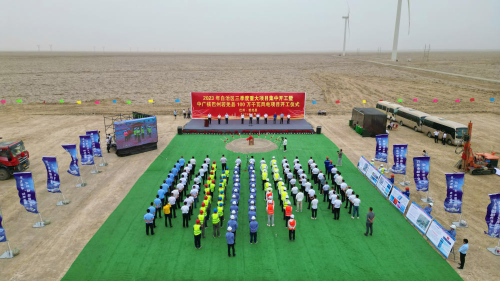 2023年自治区三季度重大项目集中开工暨中广核巴州若羌县100万千瓦风电项目开工仪式在若羌县举行。