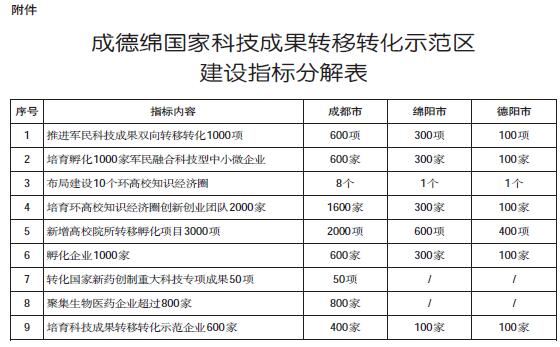 附件:成德绵国家科技成果转移转化示范区建设指标分解表