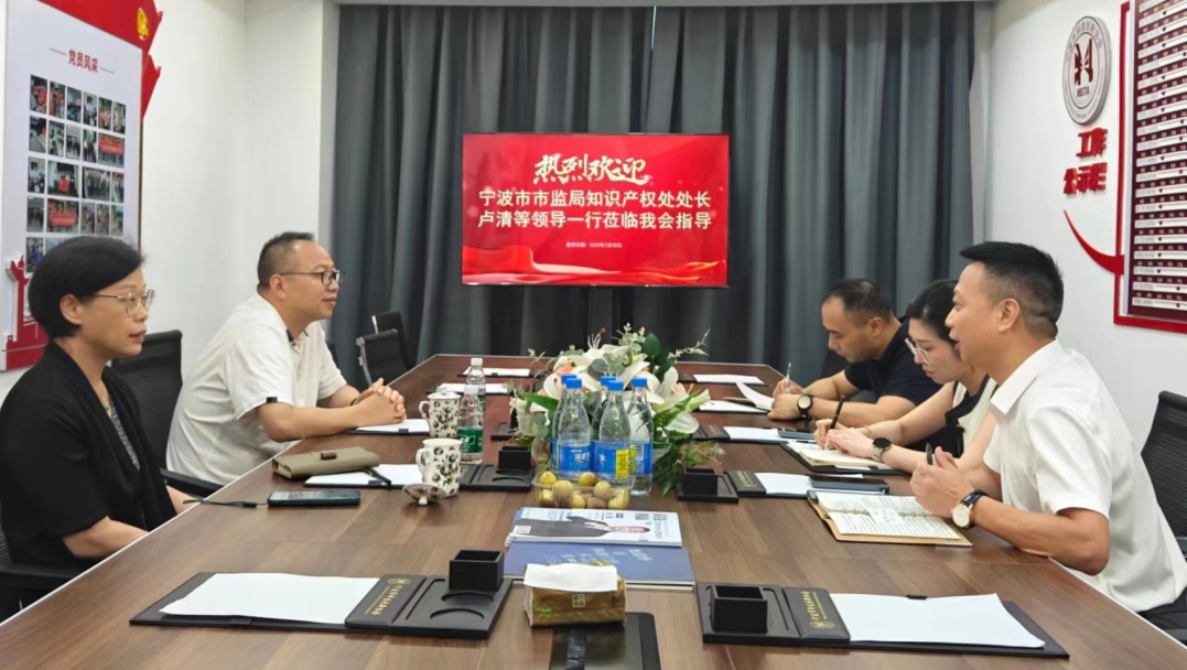 宁波市市监局知识产权处处长卢清等领导一行莅临我会指导交流!