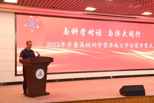 同日晚间,在济南大学分营开营仪式上,济南大学科技处处长颜梅、教务处处长陈贞翔,校团委、省科技馆等相关负责同志,来自省内5个地市的营员及带队老师近70人参加。颜梅代表济南大学向全体师生表示热烈的欢迎,勉励同学们要努力培养科学精神、激发自身科学兴趣、好奇心和想象力,深入体验大学生活,对今后的学习和生活进行美好、全面、科学的规划。