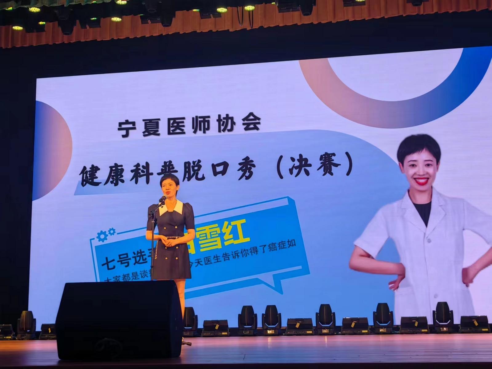 8月5日下午,为庆祝即将到来的第六个“中国医师节”,宁夏医师协会在银川市工人文化宫首次组织了一场别开生面的健康科普脱口秀大赛。