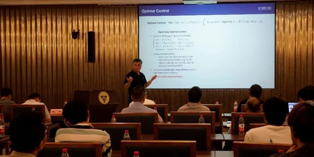 美国加州大学宫琪教授作了论坛的第一场报告,题为“Machine Learning for High-dimensional Optimal Feedback Control”。报告介绍了基于模型的数据驱动方法来近似求解高维非线性系统HJB方程的思路。宫教授及其团队基于该思路开发了不同的神经网络逼近结构,提高了学习过程中的鲁棒性及学习控制器的闭环稳定性。