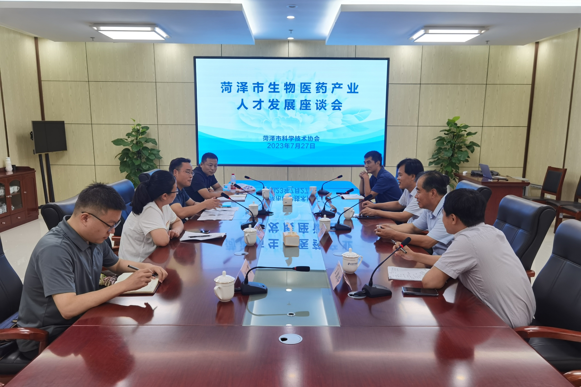 7月26—27日,济南大学生物科学与技术学院生物技术系副主任樊祥宇、制药工程系副主任王凯铭一行来菏开展智库课题调研活动,菏泽市科协党组书记、主席樊玉占,二级调研员尹相岭陪同调研。