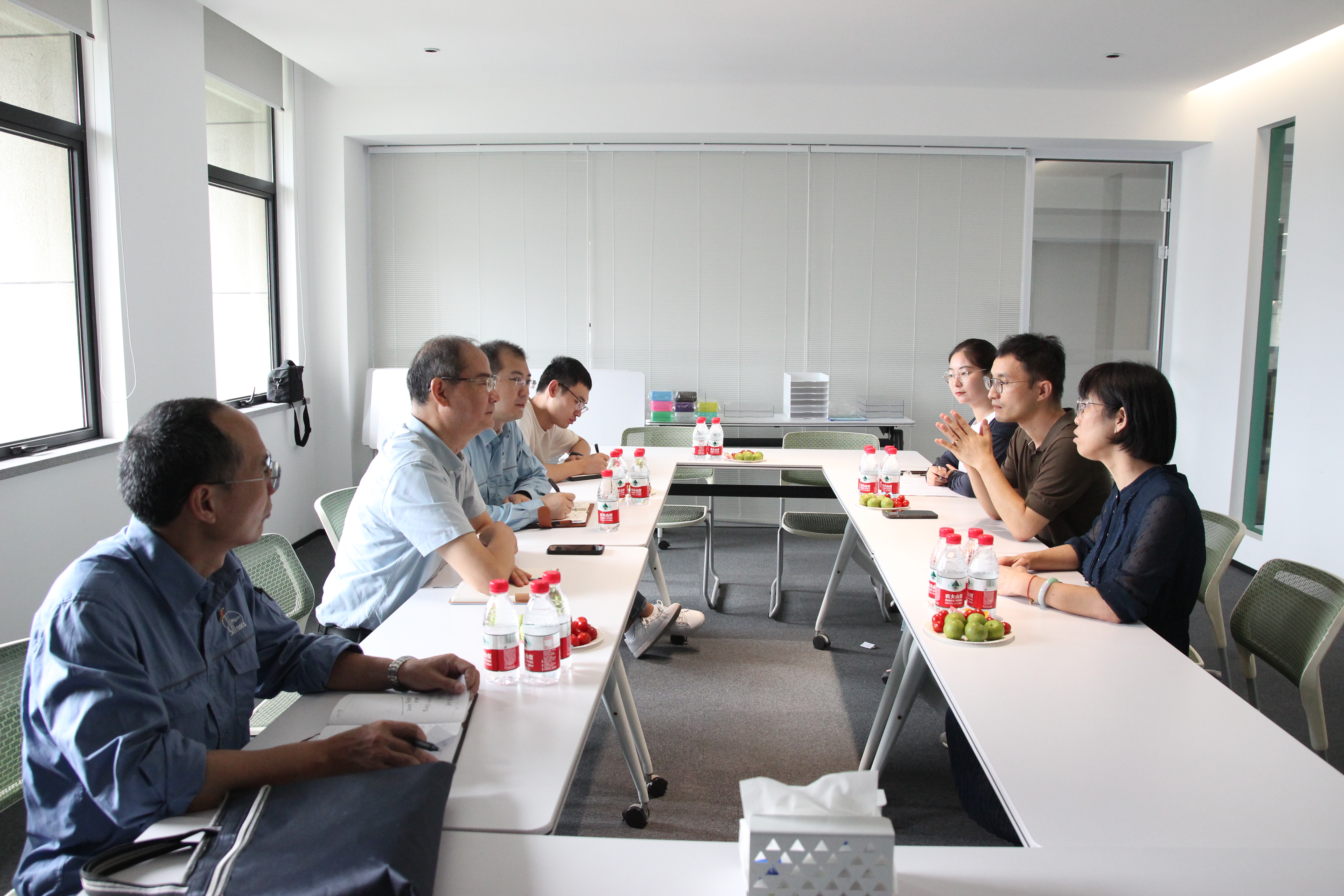 中石化新材料研究院副院长林华杰等专家深入车间察看生产设备,了解工艺流程,与赞扬文具座谈交流,双方详细探讨了不同产品特性引发的技术难题。最后一致明确了新材料开发试用途径。