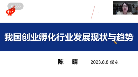 8月8日,保定市众创空间协会组织的2023年保定市孵化载体从业人员培训第六讲顺利进行。科技部火炬高技术产业开发中心原孵化器管理处处长、研究员陈晴作为授课专家,与大家系统分享了“我国创业孵化行业发展现状与趋势”。保定市众创空间协会秘书长邢志勇与陈晴老师展开交流,各地孵化行业从业者530人次参与学习。