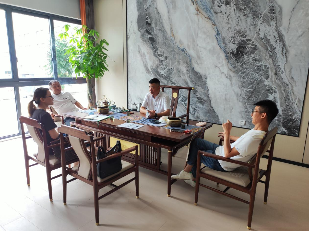 在宁波鄞州全德贸易有限公司,徐红映和王冲总经理首先对公司的情况进行了介绍,全德贸易是专业整车汽车油漆、广告合金漆,设备工业漆等涂料经销商,代理嘉宝莉、鑫策等品牌。他表示在当前“后疫情时代”,企业受到下游萎缩影响,整体订单量和利润缩水,希望继续加深与协会各会员企业的联系,进一步拓展人脉,为企业稳中有进奠定基础。