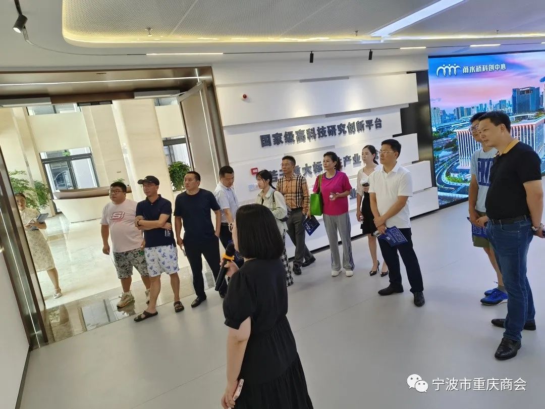 8月11日下午,宁波市重庆商会会长吴卫、执行会长郭长春、秘书长王雪松、常务副会长罗金祥、等20余位副会长单位及会员单位前往甬水桥科创中心宁波工业互联网研究院学习、考察。受到工业互联网研究院总经理助理赖刚及运营团队的热情接待。