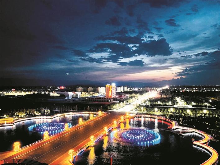 夜幕下的双河市灯光璀璨(资料图片)。雷蕾 摄