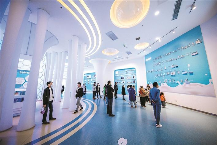 8月12日,游客在天润云端牧场的创新发展厅了解牛奶的生产过程。韩佳英 摄