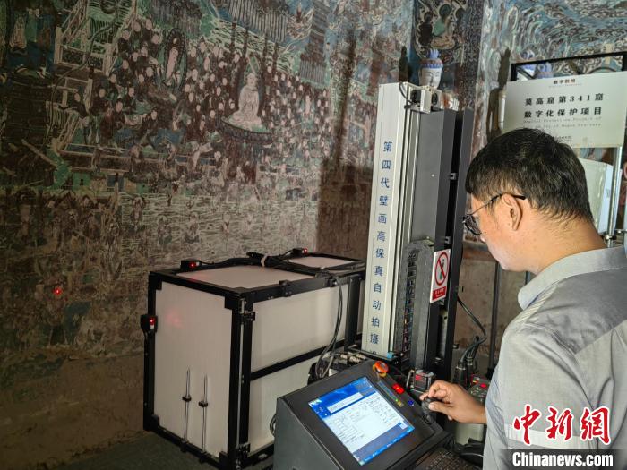 记者日前在莫高窟第341窟数字化采集现场看到,滑轨上的相机镜头在明亮的灯光下自动散点分幅拍摄,一点点采集壁画的局部;窟外盛夏暑气逼人,窟内阴凉寒气入骨,工作人员一待就是一天。采集之后,在敦煌研究院的数字化所办公室,工作人员则须更精细地对图片进行拼接和三维定位修正,或者是彩塑的三维重建。