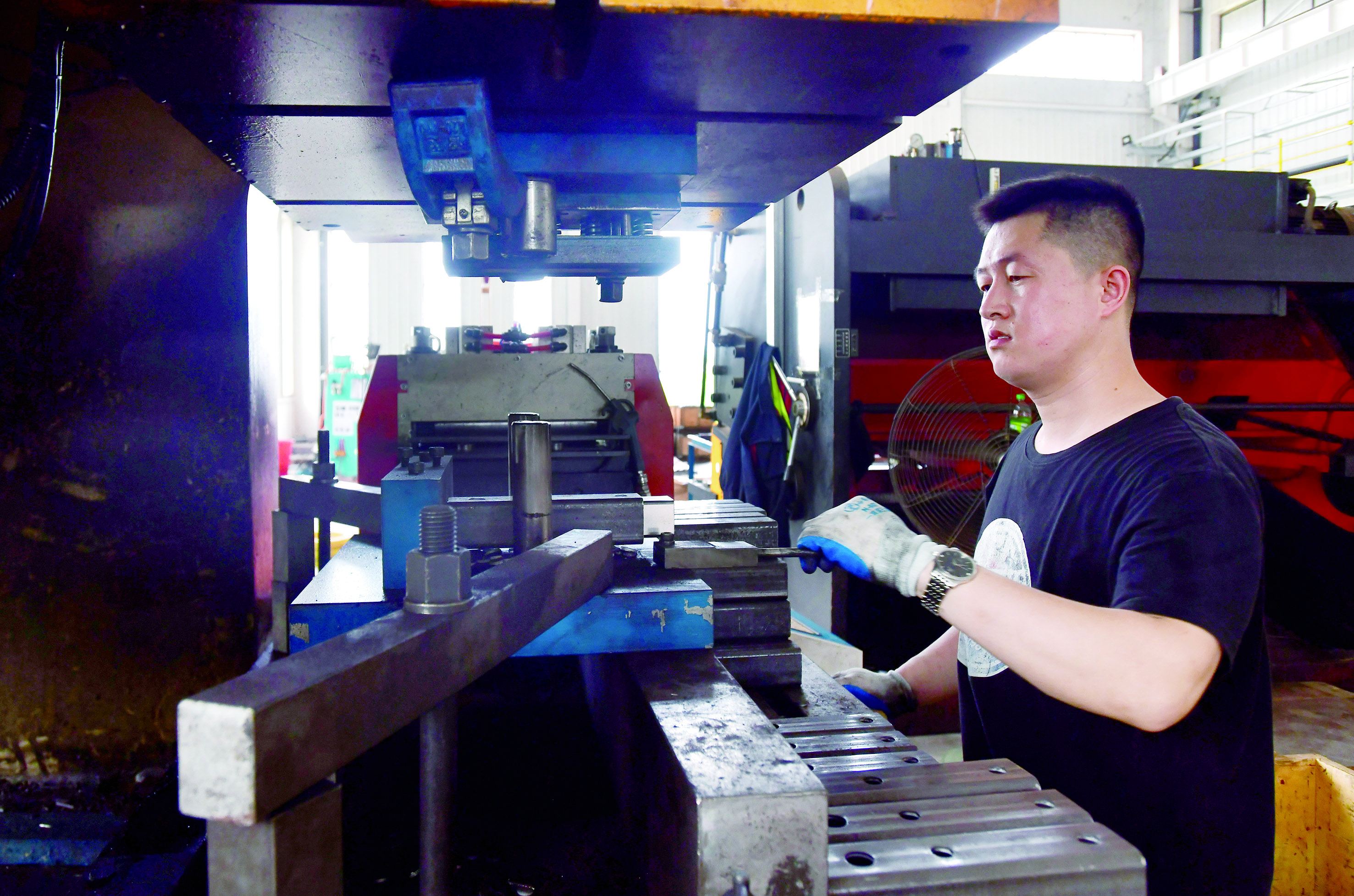 日前,在咸宁高新区湖北亚欧震达科技有限公司车间,工人们正冒着高温赶制订单。该公司主要生产城市轨道交通工程机械设备及相关部件等产品,公司在做好防暑降温的情况下赶制订单,供应市场,今年上半年,已完成产值1200余万元。