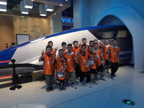 在IMAX巨幕影院中,学生们跟着“哈勃望远镜”的镜头在宇宙中翱翔,穿越着一个又一个充满奥秘的星系云团。一群小男子汉们坐进先进的磁悬浮列车中,体验了一把风驰电掣的感觉。