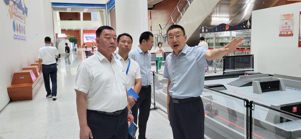 叶尔波力·沙比尤拉一行实地查看了克拉玛依科技馆内规划馆、发现与启迪展厅、创造与实践展厅、科创百年展厅、儿童科技乐园、4D影院以及部分临展区域,对克拉玛依科技馆的整体布展情况、运营维护情况、科普活动开展情况和游客到访情况等各方面进行了深入的调研。
