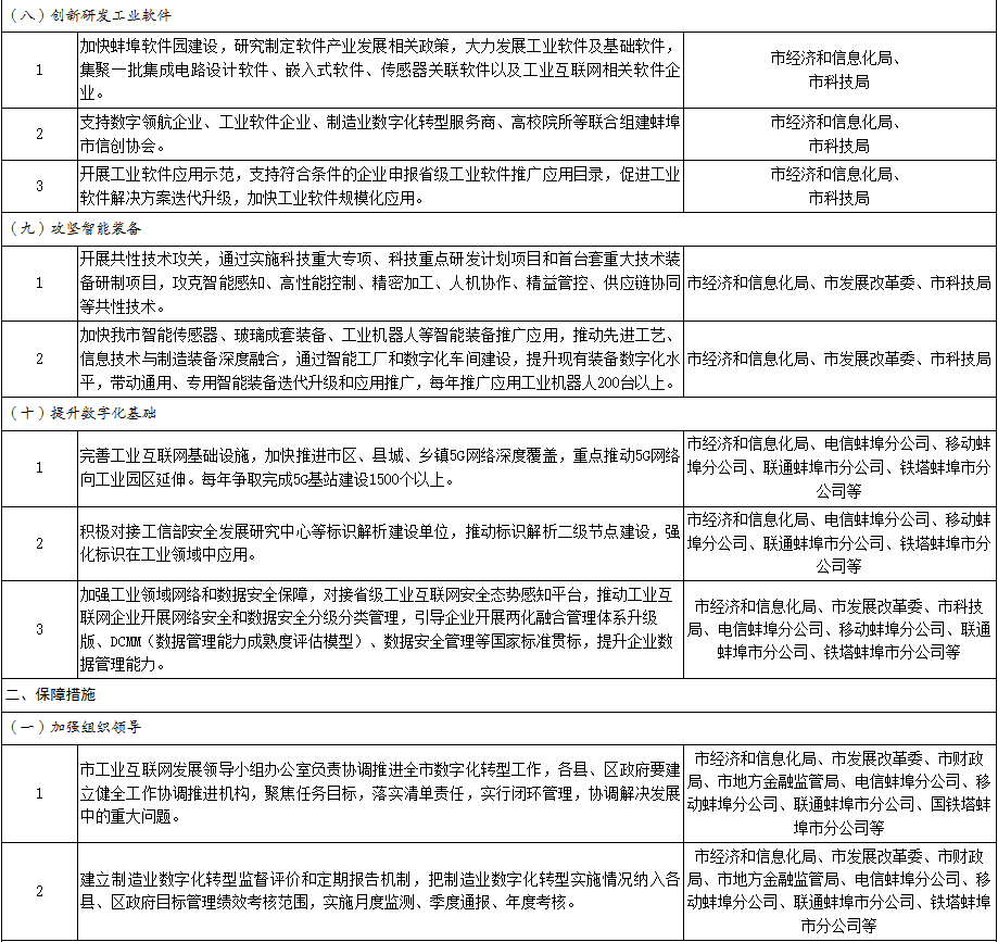 蚌埠市以数字化转型推动制造业高端化智能化绿色化发展任务清单