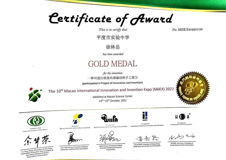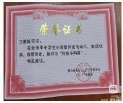 王墨翰(2019级14班),2021年青岛市科技小明星,获取国家实用新型专利、头脑奥赛全国二等奖、创意花窗全国三等奖、山东省科普展二等奖、青岛市小院士、青岛市科技创新大赛一等奖等近二十个奖项。