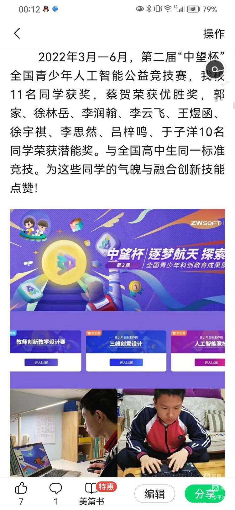 平度市试验中学领导厚植素养教育沃土,为党育人、为国育才,为学生的终生发展奠基。近几年,涌现出诸多诸多的科技创新人才,靳书杭(2021级19班)、吴佳睿(2021级3班)、张琪赞(2022级10班)、葛宝煊(2022级26班)、徐宇祺(2021级10班)等1000余名荣获科技创新奖项,形成平度市试验中学亮丽的科技创新风景线。少年强,则国强。科技强国、筑梦未来!