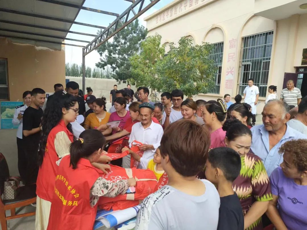 为深入推进兵地融合发展,坚持“区域统筹、兵地联创、共建共享”,兵地一盘棋的思想。8月23日,县教科局联合县科协、卫健委、农林牧等相关部门联合开展尉犁县“兵地融合 科技兴村”暨文化、科技、卫生“三下乡”志愿服务活动。