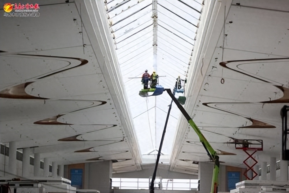 8月28日,在乌鲁木齐机场改扩建工程航站楼标段,中指廊精装修进入收尾阶段。
