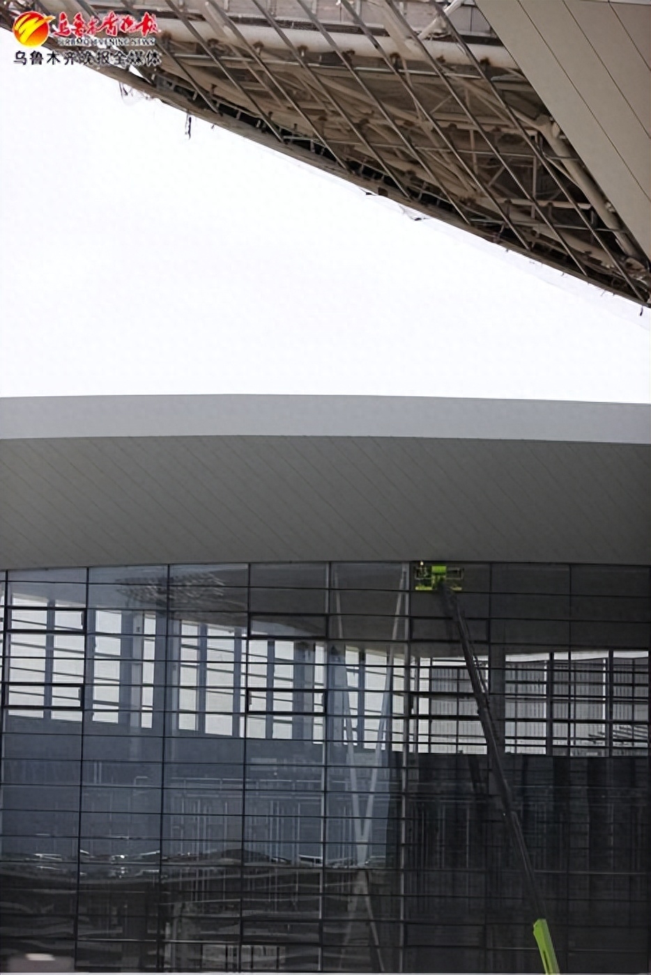 8月28日,在乌鲁木齐机场改扩建工程航站楼标段,玻璃幕墙施工进入收尾阶段。
