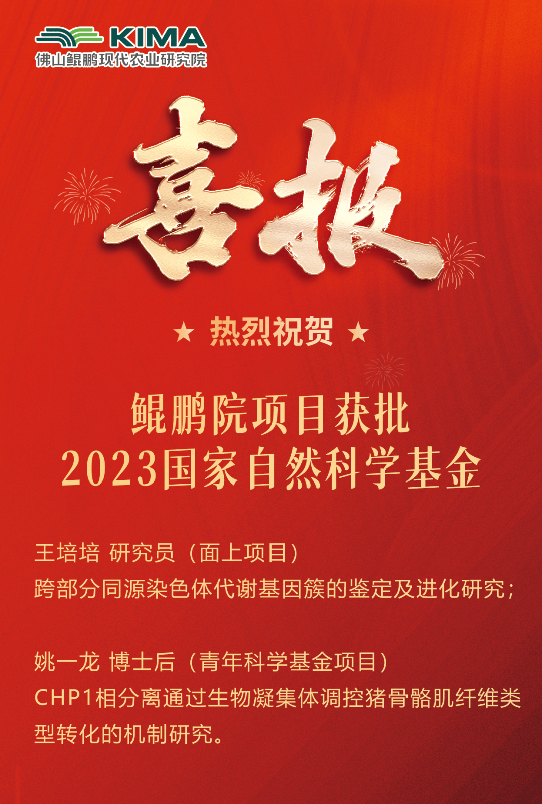 8月24日,国家自然科学基金委发布2023年国家自然科学基金集中接收申请项目评审结果,佛山鲲鹏现代农业研究院(以下简称“鲲鹏院”)2项项目获得立项资助(面上项目1项、青年科学基金项目1项),获批科研经费80万元。