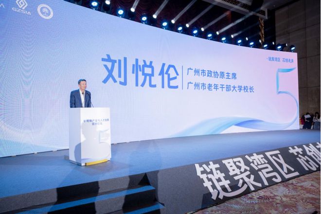 广州市政协原主席、现任广州市老年干部大学校长刘悦伦在致辞中回顾了广州发展半导体产业的历史,指出了依托粤芯设立半导体协会,推动了半导体行业的发展,并对半导体协会成功换届给与祝贺。