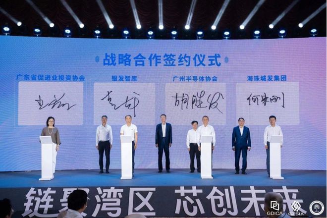 在论坛期间,举行了由银发智库、广州半导体协会、广东省促进企业投资协会、海珠城发集团发起的战略合作协议签署仪式。
