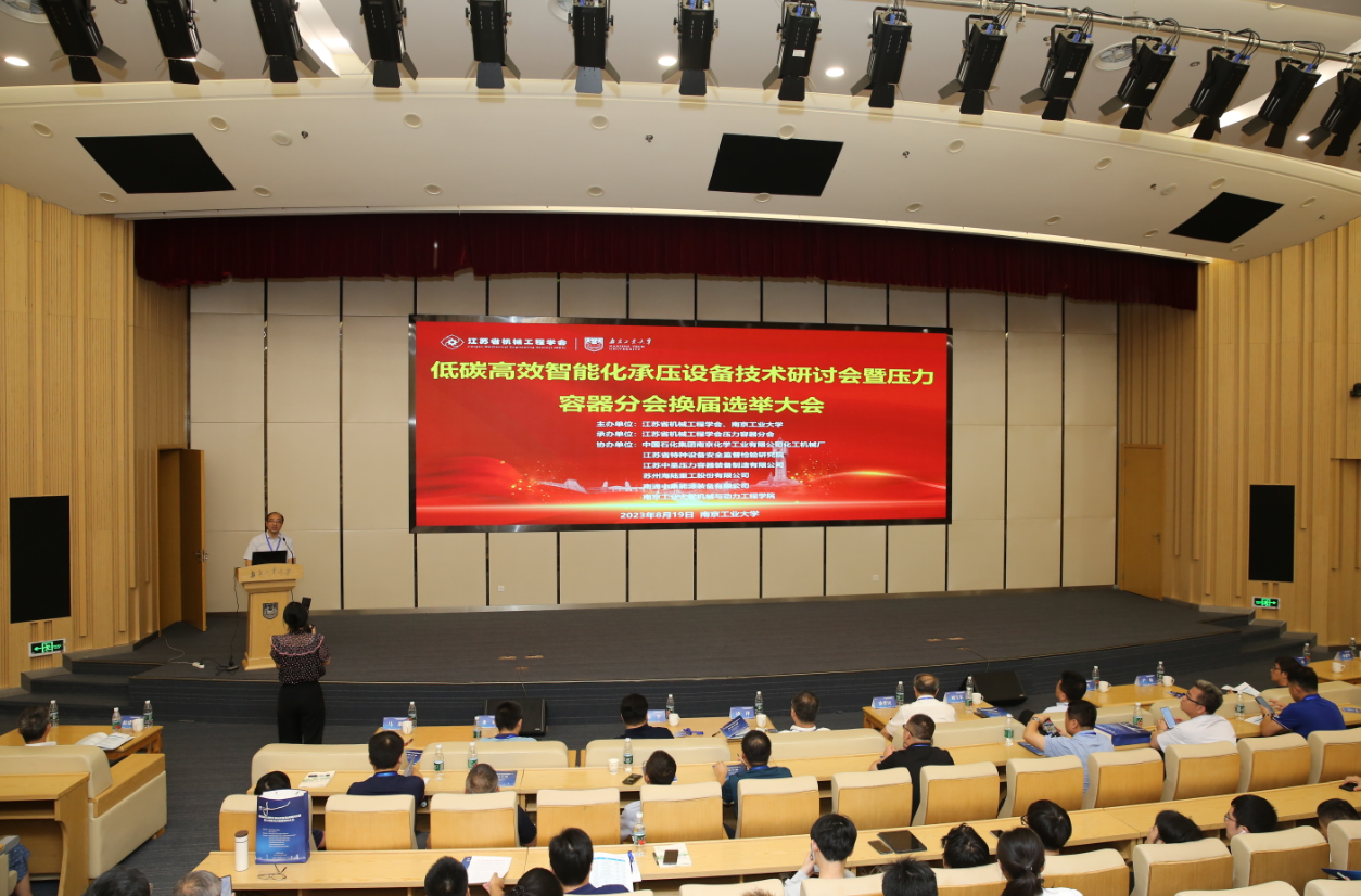 8月19日,由中国机械工程学会、“科创中国”江苏科技服务团牵头单位江苏省科学技术协会指导,江苏省机械工程学会压力容器分会承办,“科创中国”江苏科技服务团成员单位江苏省机械工程学会、南京工业大学联合主办的“低碳高效智能化承压设备技术研讨会暨压力容器分会换届选举大会”在宁隆重召开。江苏省机械工程学会副理事长朱平、史金飞,秘书长徐爱民,南京工业大学副校长凌祥,分会成员单位和个人会员出席会议。