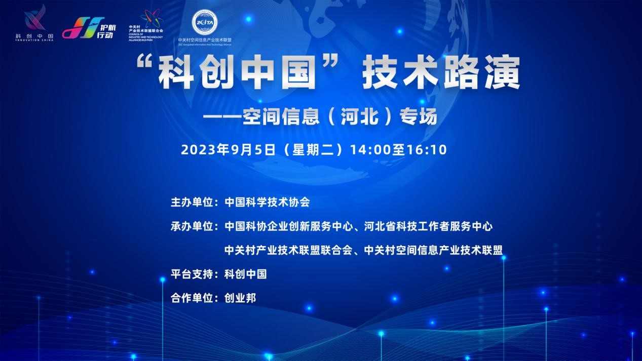 “科创中国”技术路演——空间信息(河北)专场活动9月5日下午线上举行,活动通过“科创中国”、企业创新最前沿等平台宣传推介。