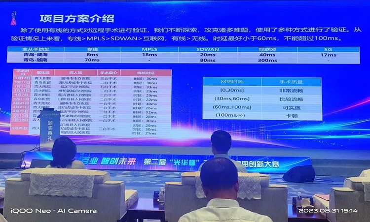 作为我国信息通信领域具有重要影响力的赛事活动之一,第二届“光华杯”千兆光网应用创新大赛北部大区赛的顺利举办,将推动涌现一批业务模式创新、具有本地发展基因和鲜明示范意义的千兆光网创新应用,助力构建形成“应用驱动,区域协同”的千兆光网良好发展格局。此次大赛中青岛市《OTN光云构筑算网协同的海洋超算创新示范项目》《青岛胶东机场L4级飞行区无人驾驶车辆项目》《以双千兆为核心的网络构建中国远程手术模式》三个项目荣获一等奖,三个项目荣获二等奖,一等奖获奖比例占山东省的50%,占北部大区的25%。