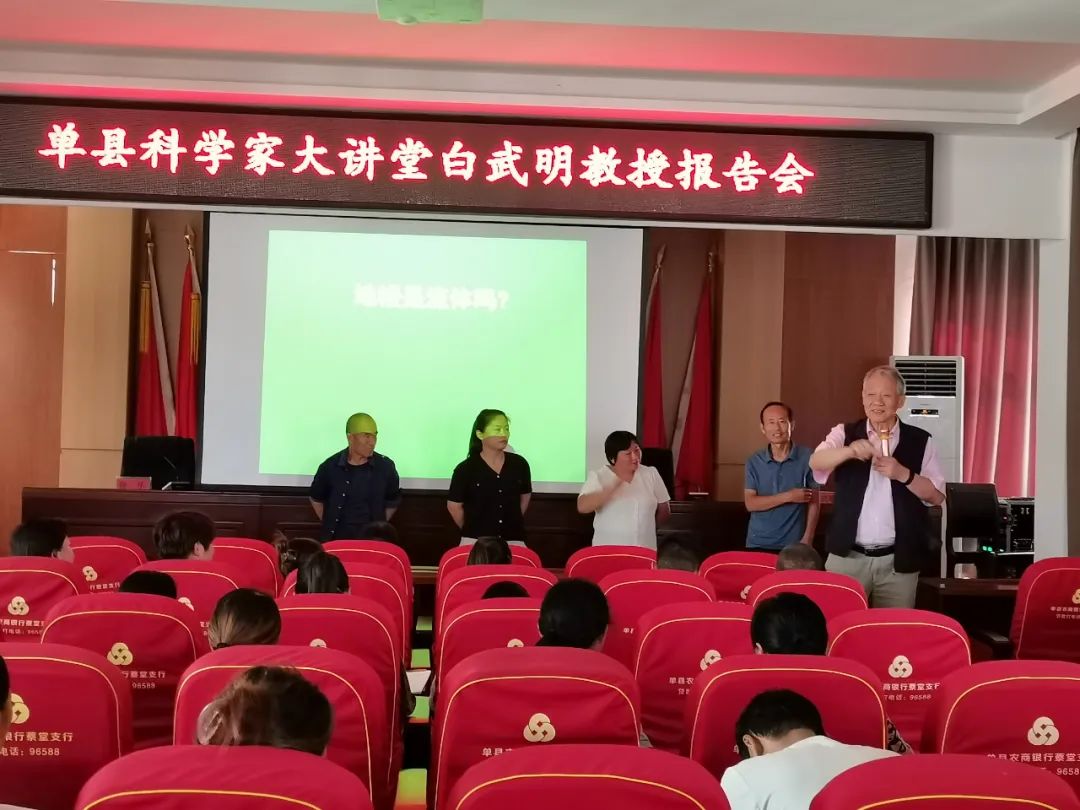 9月6日,单县科协邀请中国科学院老科学家科普演讲团白武明、徐文耀、韩莉、李建军、林钢华5位教授,开展第二十期“单县科学家大讲堂”,走进单县蔡堂镇人民政府等4处机关、社区及单州小学等6所学校,为1600余名干部群众、中小学师生送去了10场精彩的科普讲座。