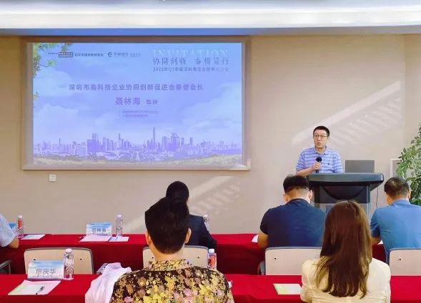 深圳高促会秘书长尹辉为各位介绍了即将于下月开展的协会会员大会相关事项。之后,深圳高促会将继续围绕科技与人才发展主线,立足广大会员服务需求,为会员以及科技人才们提供更多优质服务,将建立11个专委会,希望通过专委会推动协会会员企业的进一步良性发展,相信这将成为协会未来前进道路上新的助力器。