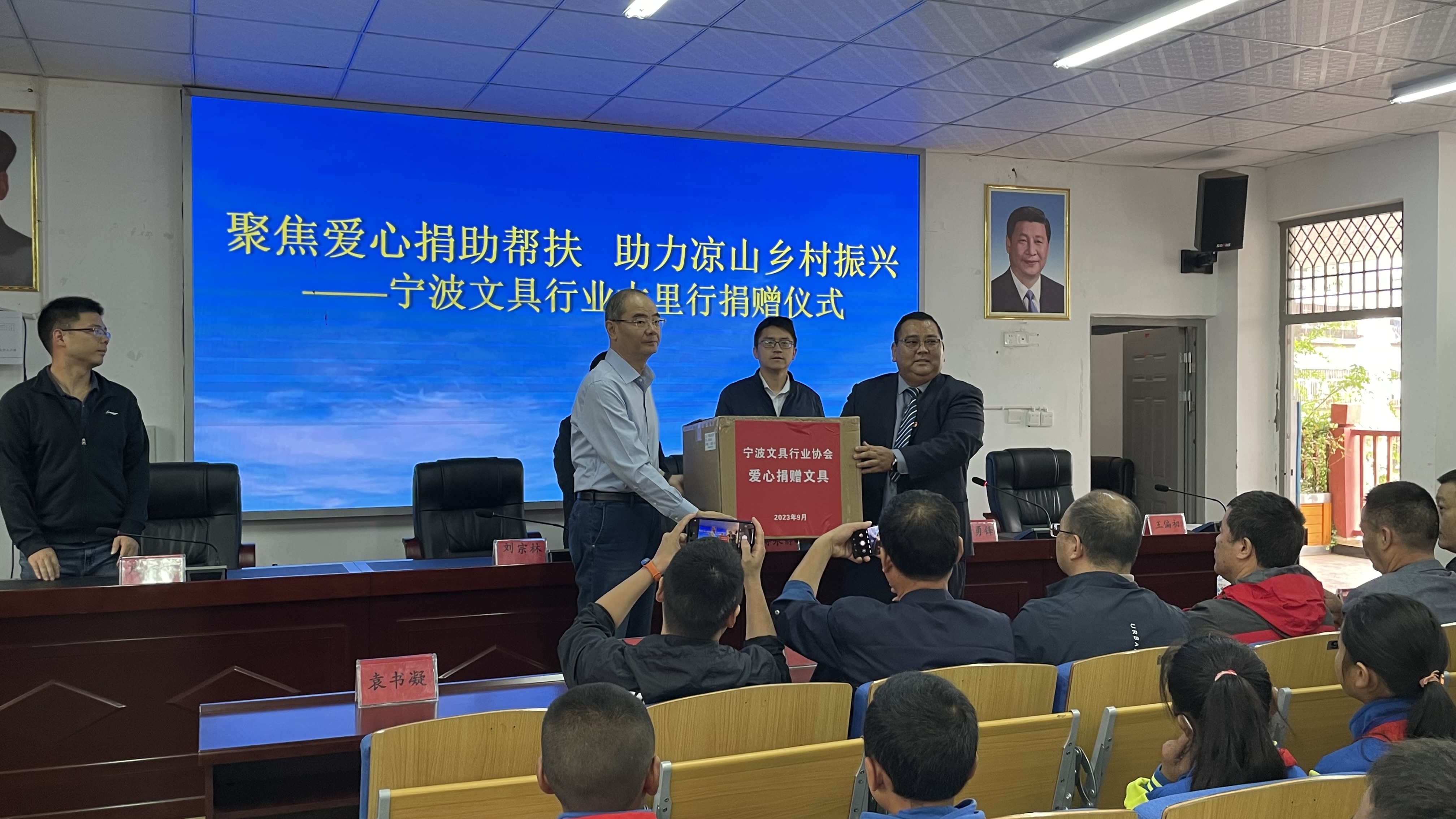 爱心捐助暖人心,乡村振兴显担当。为弘扬宁波文具企业爱心精神和社会责任,助力东西部协作、促进乡村振兴,根据宁波市民政局和市经信局工作要求和协会年度工作计划,宁波文具行业协会在年初发布了《2023年度爱心助学乡村振兴倡议书》,得到众多热心公益的文具企业热烈响应。截止8月,共募集了60余万爱心文具,定向捐赠到四川省凉山州木里县近10所高原山区乡镇小学。