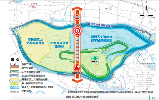 “三区支撑”:建设琶洲人工智能与数字经济试验区、中大国际创新生态谷、海珠新活力文商旅融合圈。