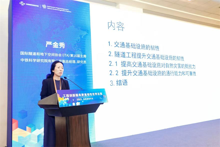 国际隧道和地下空间协会(ITA)第16届主席,中铁科学研究院有限公司副总经理、研究员严金秀发表主旨演讲