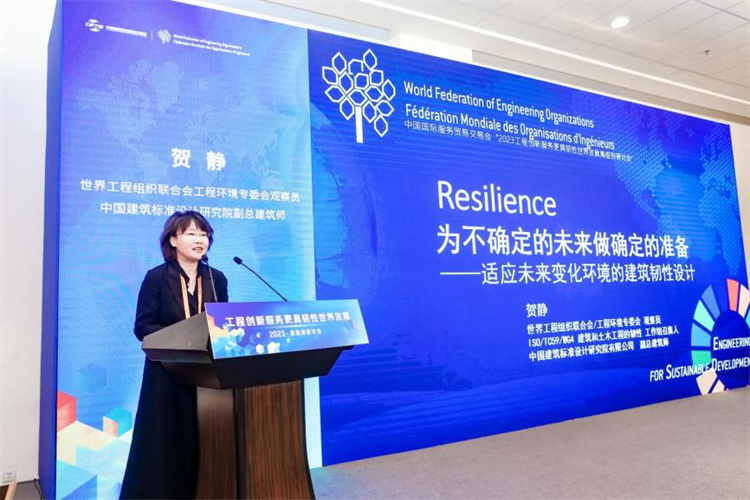 世界工程组织联合会工程环境专委会观察员、中国建筑设计标准院副总建筑师贺静发表主旨演讲