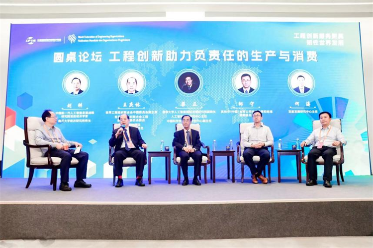 研讨会第三阶段圆桌论坛由中国新一代人工智能发展战略研究院首席经济学家、南开大学经济研究所所长刘刚主持。世界工程组织联合会中国委员会副主席、世界工程组织联合会工程能力建设委员会委员、中国科协国际合作部一级巡视员王庆林,清华大学人工智能国际治理研究院副院长、人工智能治理研究中心主任、中国科学技术政策研究中心副主任梁正,英特尔(中国)有限公司技术政策和标准部高级总监邹宁,百度发展研究中心主任何涛作为对话嘉宾,围绕“工程创新助力负责任的生产与消费”话题进行精彩讨论。