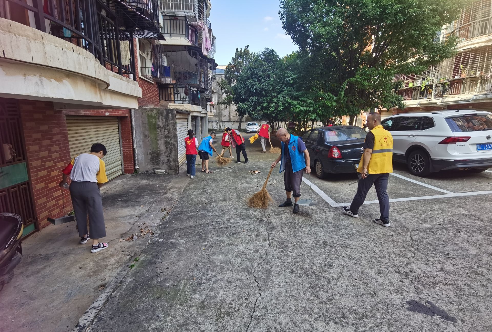 活动中,组工干部和社区志愿者们手拿铁钳、垃圾袋、扫把等工具,对社区主要道路、小区楼道等场所的落叶、纸屑、烟头、杂物和小广告等开展拉网式清除;对部分公共区域乱堆乱放现象进行劝导清理,并鼓励小区居民积极监督身边不文明行为。