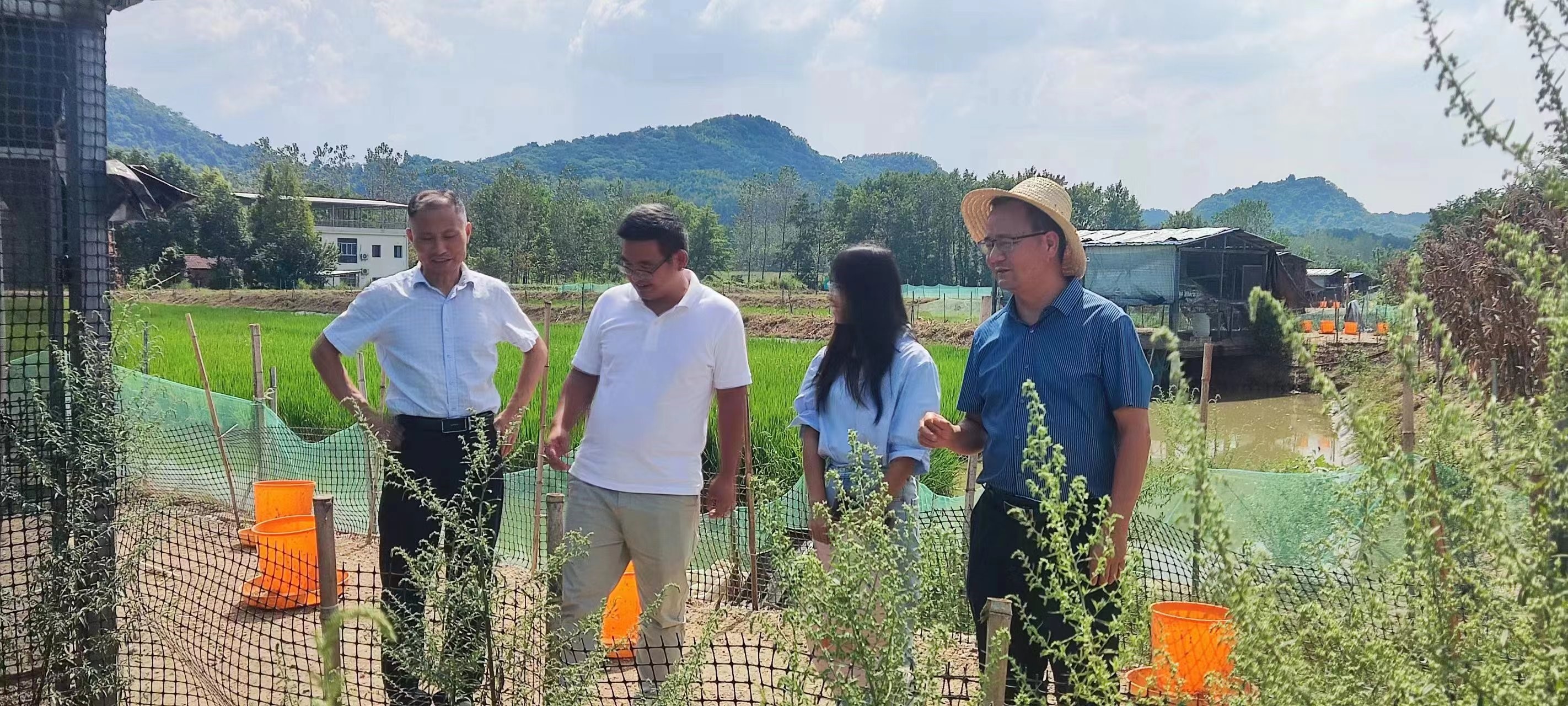 培训会结束后,梁振华副研究员、我院畜牧团队前往赤壁市娴子生态种养殖专业合作社现场指导。就“稻-虾-鸭”模式蛋鸭养殖、疫病防治、水塘分块轮放鸭群等问题给出意见建议。