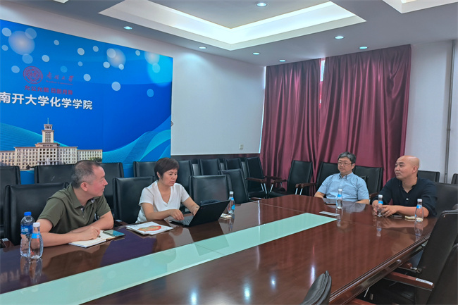 7月8日,北京大学深圳研究生院党委副书记邹月娴来访南开大学化学学院,北京大学深圳研究生院院长办公室党委办公室副主任吴华南陪同访问。南开大学化学学院党委副书记王蔚、副院长计景成在蒙民伟楼会见了客人,双方围绕高质量党建引领高质量发展、教师思政和师德师风建设等开展深入交流座谈。