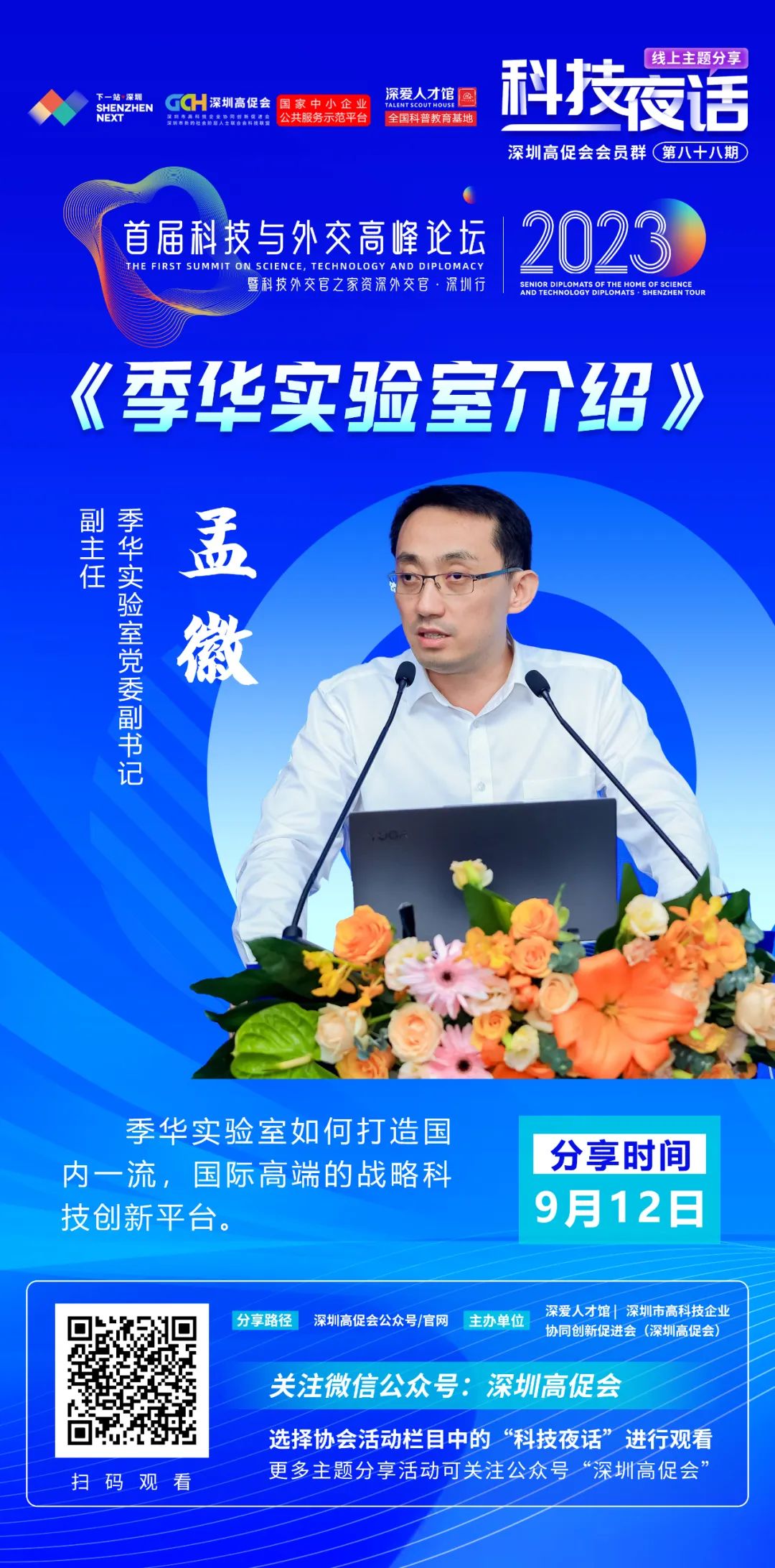 深圳高促会第八十八期科技夜话推出,由季华实验室党委副书记、副主任孟徽进行分享。季华实验室是广东省委省政府在2017年启动的首批四家省实验室之一,他分享了实验室在科研平台建设、先进制造、科学与技术部署以及成果转化等方面所取得的成果。
