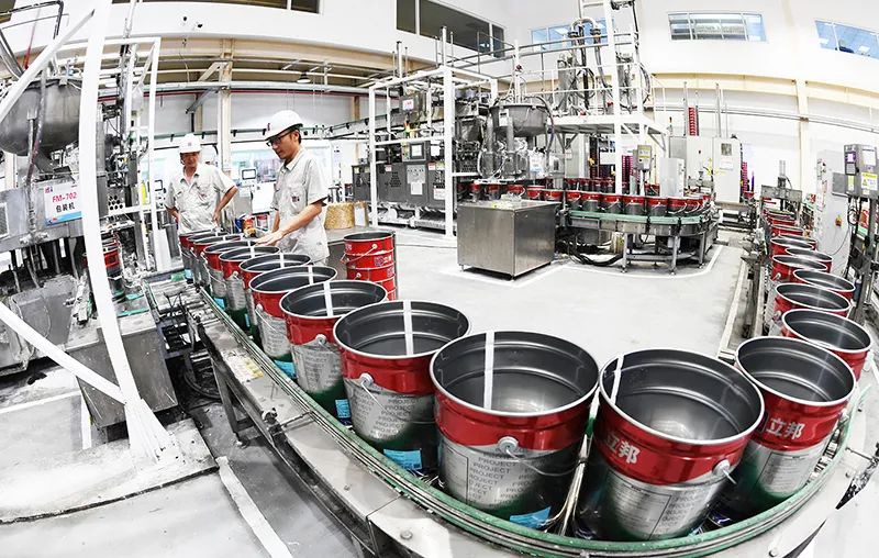 近日,立邦涂料(湖北)有限公司生产车间,工人们赶制一批销往江西的涂料产品。