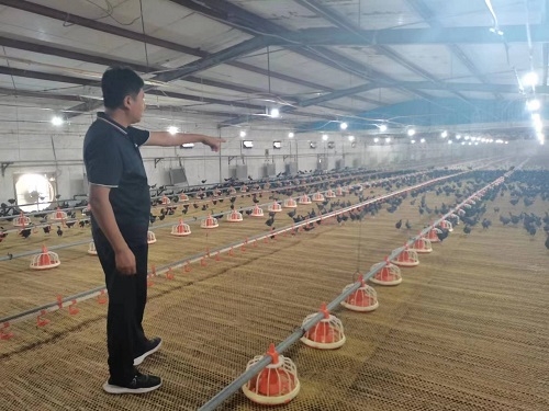 43岁的汶上县芦花鸡养殖户马海涛受益于科协专家的技术辅导。此时,他站在自家鸡舍内。科技日报记者 王延斌 摄